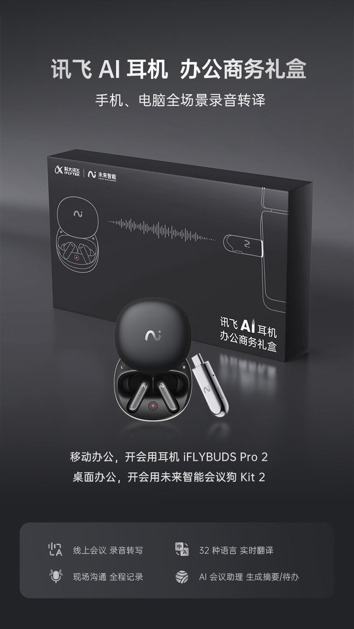科大讯飞(iFLYTEK)【礼盒新款】录音降噪会议耳机Pro2夜影黑 办公商务礼盒 一键闪录 AI会议助理 同传翻译 主动降噪 科大讯飞(iFLYTEK)【礼盒新款】录音降噪会议耳机Pro2夜影黑 办公商务礼盒 一键闪录 AI会议助理 同传翻译 主动降噪 科大讯飞(iFLYTEK)【礼盒新款】录音降噪会议耳机Pro2夜影黑 办公商务礼盒 一键闪录 AI会议助理 同传翻译 主动降噪